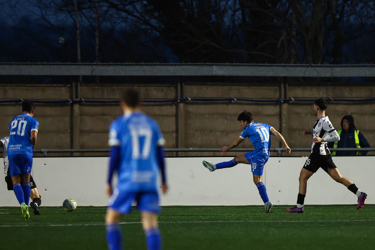The visitors could have drawn level five minutes before half time, but Rhys Abbruzzese’s free-kick from just outside the area was gathered by Dawid Szczepaniak.
